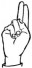 На ћирилици написано БУДИМИР РНИЋ састоји се из 11 слова [?]. Исписано ћириличном једноручном азбуком за глувонеме: